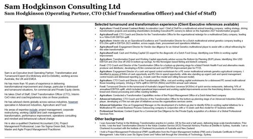 Engage me to deliver turnaround, corporate restructuring and transformation change through Sam Hodgkinson Consulting Ltd.